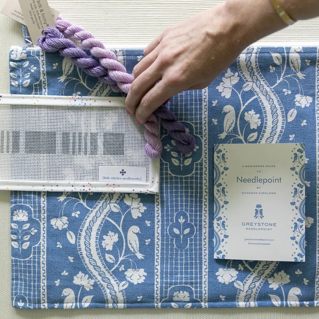 These kits are specifically created with the new needlepointer in mind, as every purchase includes all the items you need to get started (the canvas and matching threads!)